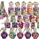 - Our empty essential oil car diffuser bottles set are shipped in random patterns, each one looks unique and pretty! Each empty car oil diffuser bottle comes with a cap and a hanging string,it can put on table or corner of room and hang up.Simply put your favorite Essential Oil in to the well and enjoy the subtle aroma for last.