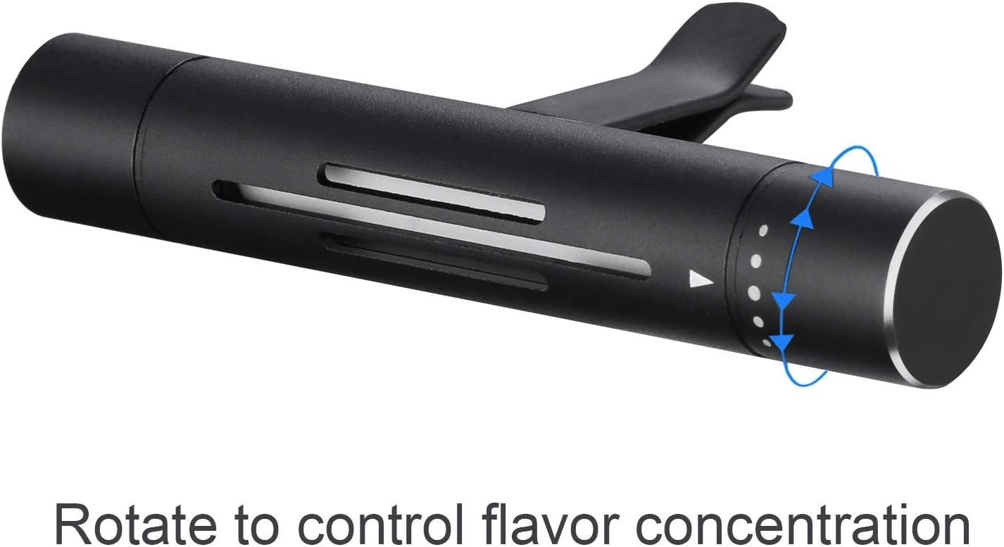 - 【Adjustable Fragrance Concentration】The top and bottom of our car clips have different sizes of diffuser hole, you can rotate the white dot-marked end of our car air freshener to control the concentration of aromatherapy. When you want a faint scent, you can turn off the diffusion port by rotating it.